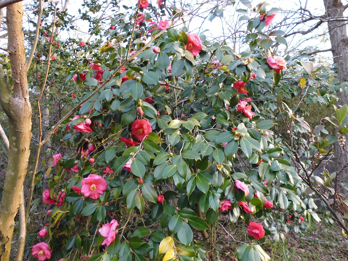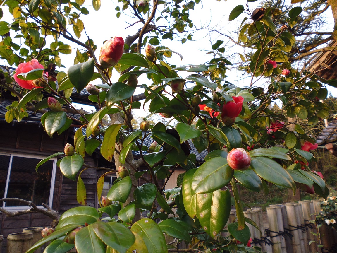 我が家の庭にも、いろいろな種類の椿が咲きみだれ、