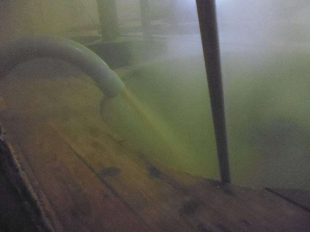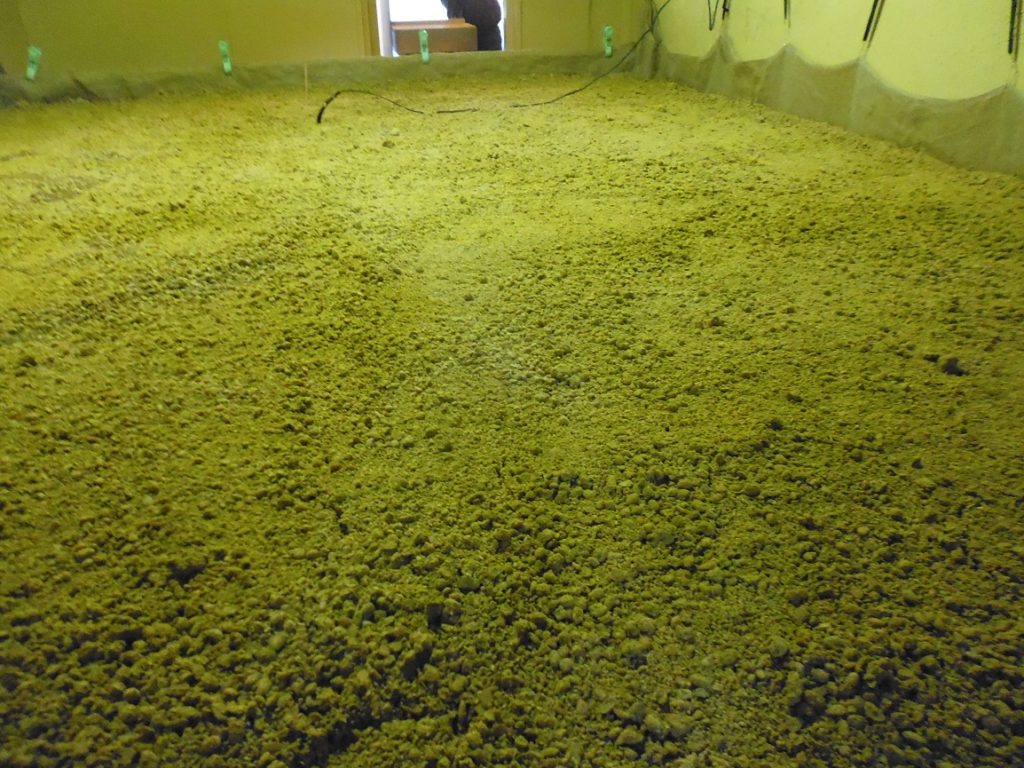 仕込み3日目 Posted on 2017年2月25日 by 近岡屋醤油おかみ 仕込み3日目 出麹の日です。 昨日の夕方の二番手入れ後、温度調節用の空気を送るファンが はいったり、とまったりしています。麹の育成が順調に進んでいる証拠です。 麹にも、かなり黄色くなった胞子がたくさんつき、ここまでくればひとまず安心。 室の麹を木桶に移し、塩水と混ぜ合わせる「 出麹 」という作業も 無事終えることができました。 今から二年間、じっくりと発酵熟成させ、おいしい諸味ができあがるのを 気長に待つことにします。